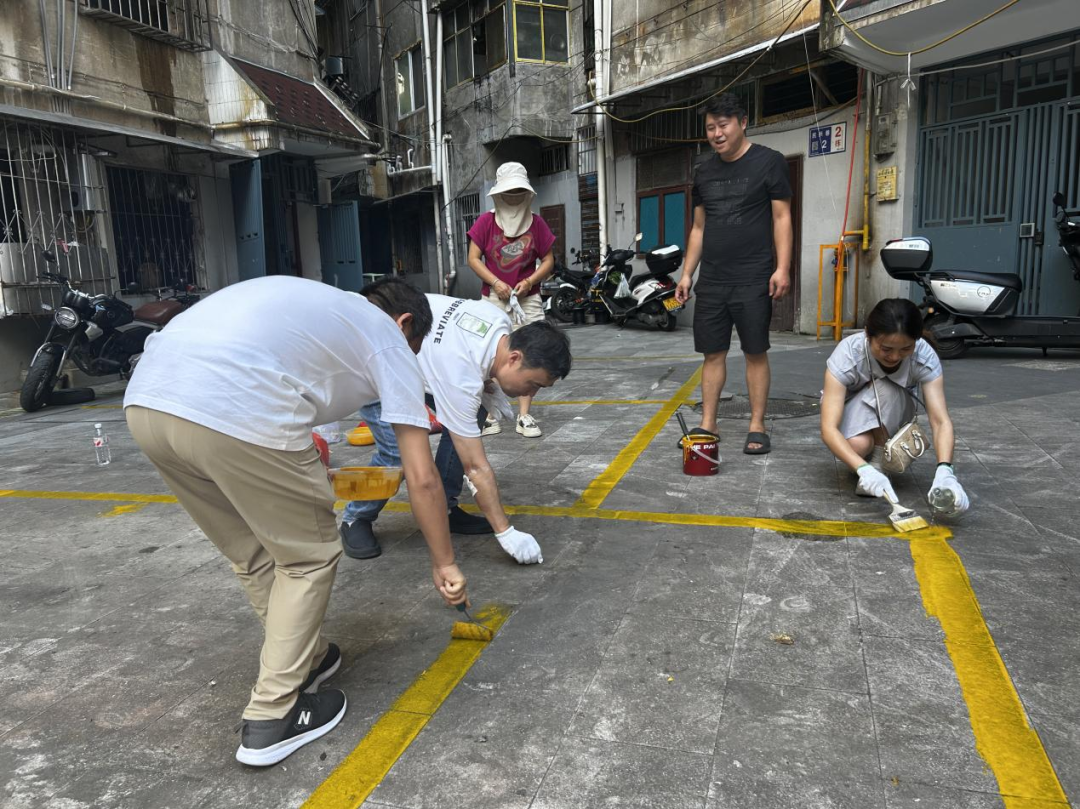 活动当天,志愿者们各司其职、高效协作。一部分负责重新测量车位尺寸,确保每个车位符合标准要求;另一部分手持划线工具,沿预定标记划出清晰整齐的车位轮廓。同时,志愿者们还主动向居民宣传规范停车的重要性,引导市民按照标线有序停放。