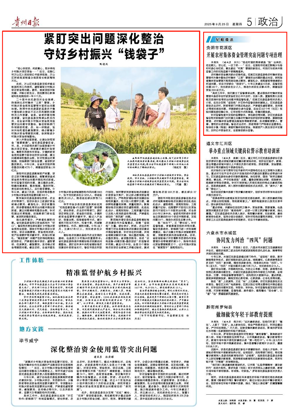 《贵州日报》|紧盯突出问题深化整治 守好乡村振兴“钱袋子”