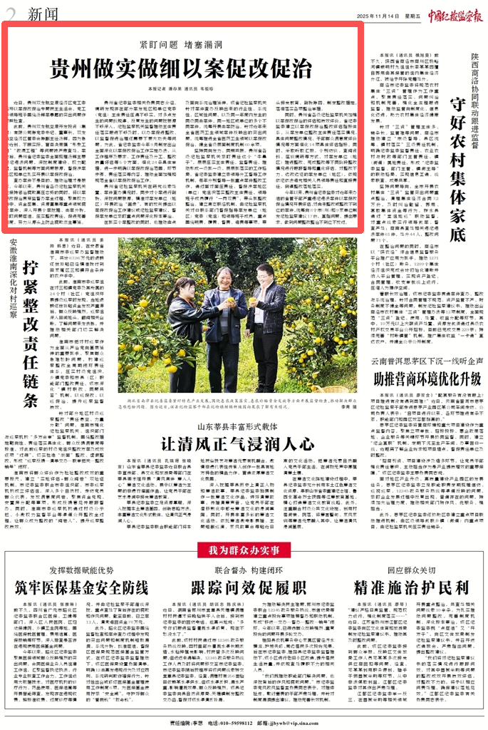 贵州省纪委监委相关负责同志介绍,调研发现存在部分案发地区和单位党委(党组)主体责任压得不够实,对多点发生的问题找规律、反复发生的问题挖根源不够深入,纪检监察机关监督推动主体责任落实跟进不够及时,以办案促进整改、以监督促进治理还需要下更大功夫等问题。为此,省纪委监委今年9月制定出台全面深化以案促改促治工作实施办法,从工作程序及要求、工作责任及分工、整改质量评估等5个方面,细化24条具体举措,进一步明确以案促改促治范围、环节步骤、责任落实等内容,推动全面加强和规范全省以案促改促治工作。